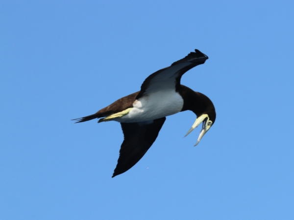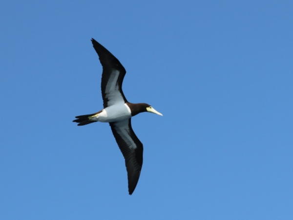 | 画像説明 | 熱帯・亜熱帯の海洋性の鳥ですが、鹿児島の錦江湾でも見られるとか。褐色(下から見ると黒)と白の鳥です。顔に特徴がありますね。 |