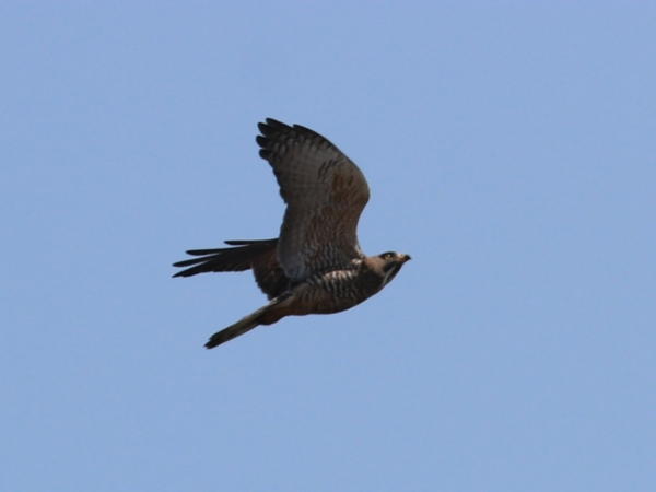 離島で見かけました。日本や朝鮮半島などで繁殖し、フィリピンやインドネシアなどで冬を越すサシバの渡りと呼ばれる大きな群れを作ることで知られていますが、南西諸島で冬を越す個体もあるとのこと。